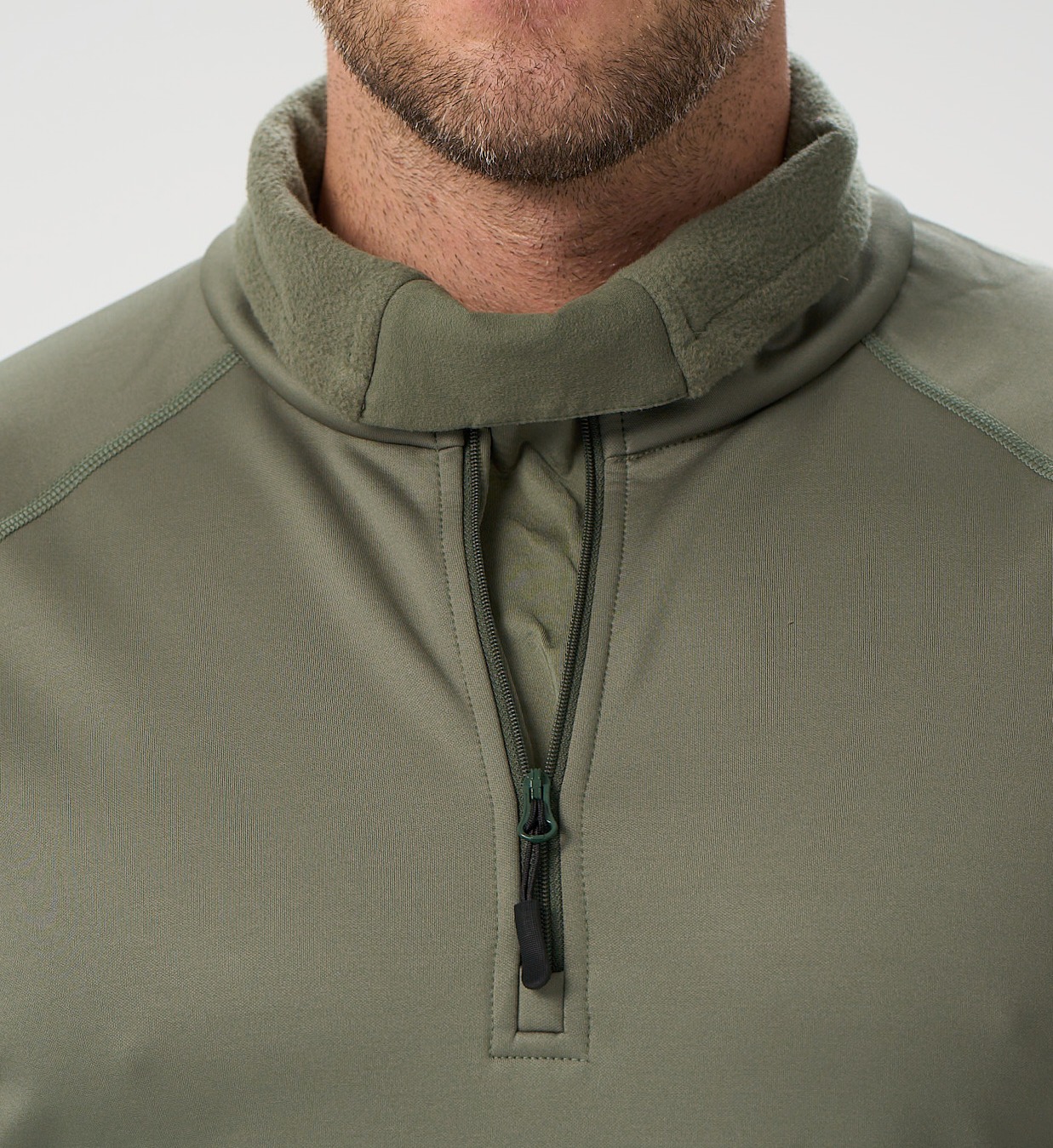 Воротник специальной формы: оснащен треугольной вставкой-расширителем, молния не закусывает кожу. Воротник надежно защищает горло от холодного воздуха. При расстёгнутой молнии воротник даёт большое «окно» для вентиляции и радикально уменьшает давление на горло при этом защищает от холодного ветра. Воротник можно подвернуть вниз, как в водолазке. Воротник достаточно высокий для защиты в лютый ветер.