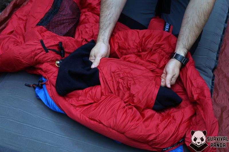 Также полезной фишкой является небольшой рукав в капюшоне, с помощью которого можно превратить одежду, например, флиску, во вполне удобную подушку.